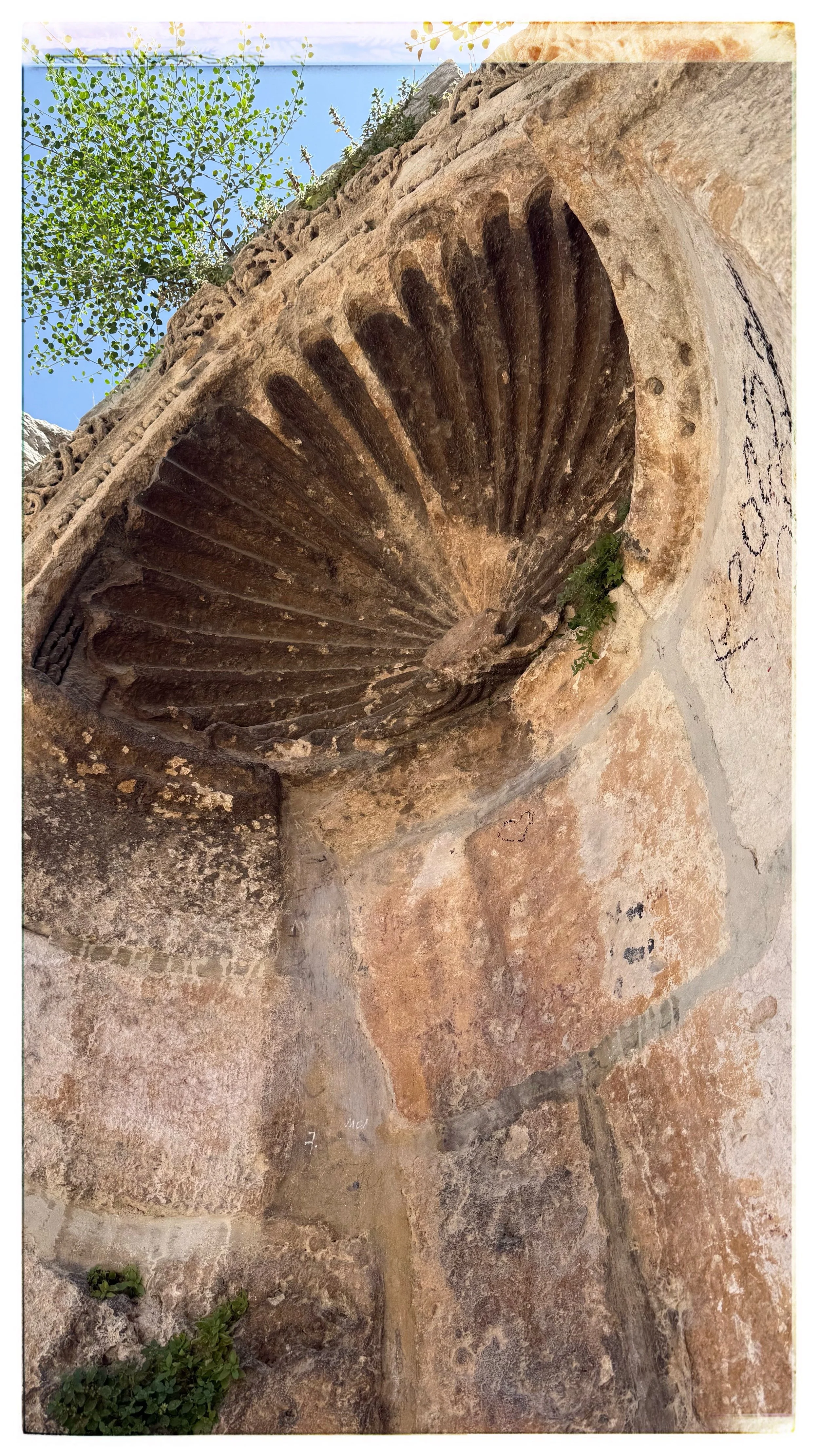 • Carved Roman-style stone frieze band